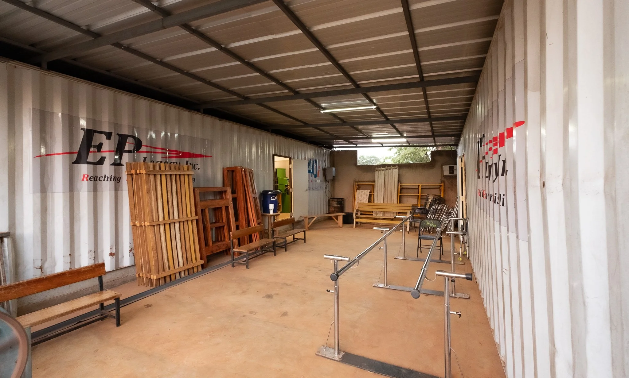We knew that to continue these trips, we would need to think differently and needed to have a facility on site in which to do our work and see patients. We were able to obtain two shipping containers in 2017. We outfitted them with equipment through donations, etc. and created one container for seeing patients and providing our team with living quarters and the second was outfitted as a workshop for assembly and work to be done on the limbs we would deliver and also for making repairs or adjustments on a patient’s existing equipment. In January of 2018 the containers left North Carolina, USA bound for the Ivory Coast!